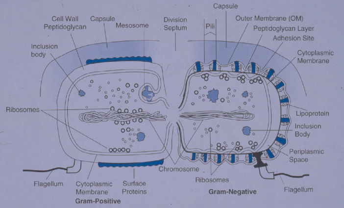 La paroi est riche en lipides. Le cristal violet est facilement libéré de la paroi par le décolorant. La contre-coloration avec la safranine est possible car la paroi est libre de colorant : bactérie Gram négative (ex. : Escherichia coli).