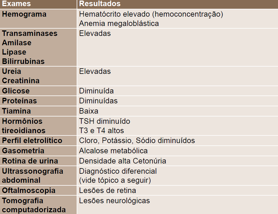 Qual o tto da hiperêmese gravídica? Tabela dos exames laboratoriais.