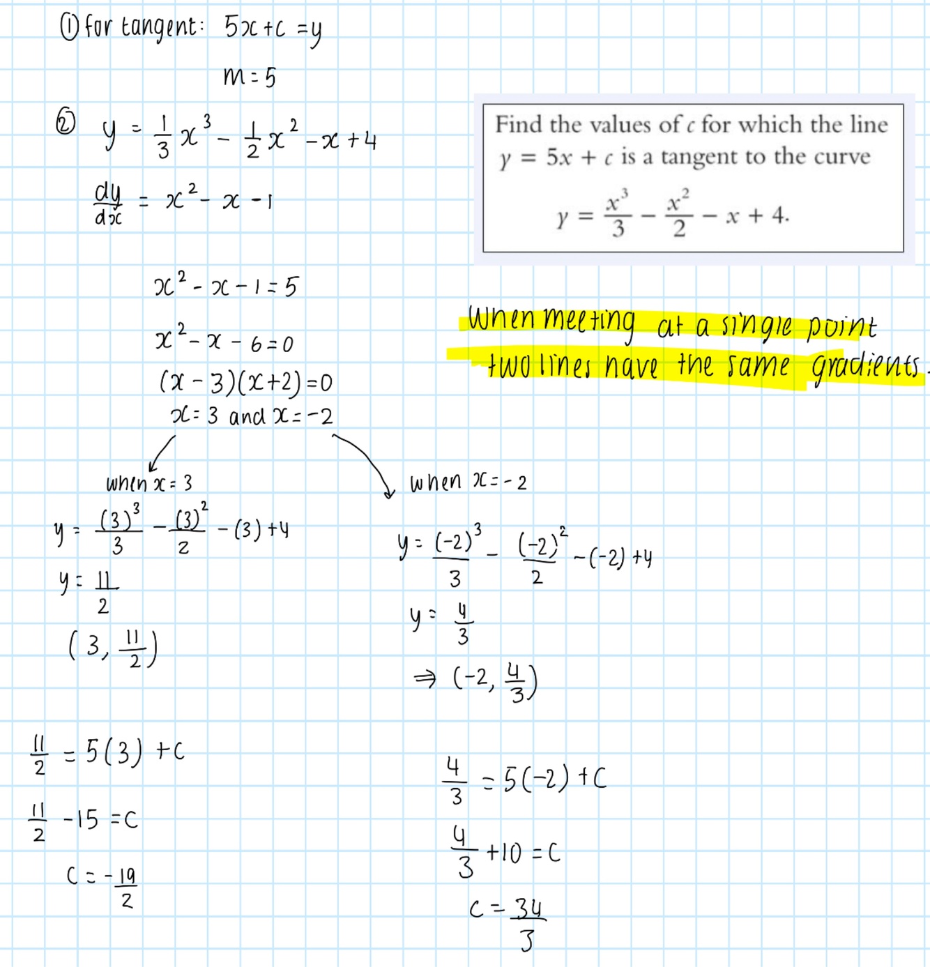 **When two lines meet at a single point they have the same gradient