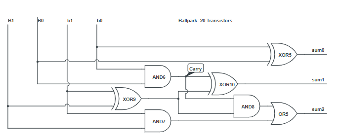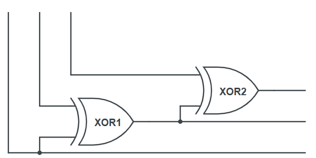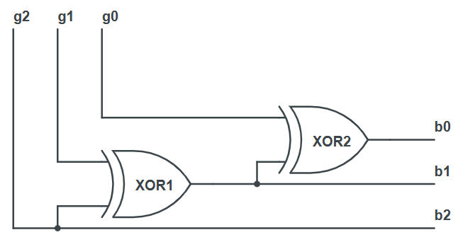 This is also reversible (meaning that it can work as a 3-bit gray-code to binary converter)