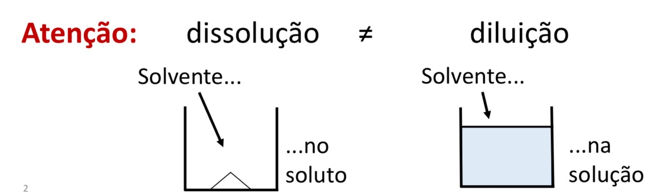 A dissolução consiste em acrescentar solvente em um soluto, já a diluição consiste em acrescentar solvente em uma solução.