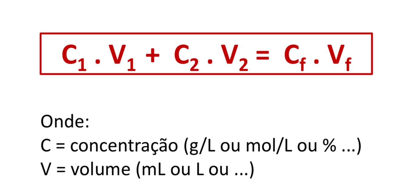Obs: para podermos utilizar tal fórmula não pode haver reação entre os solutos das soluções e caso haja reação então devemos fazer cálculo estequiométrico.