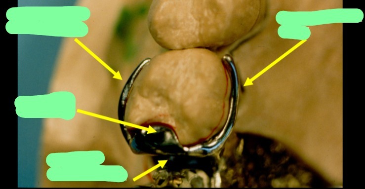 A properly constructed suprabulge or infrabulge clasp assembly must incorporate the following components: