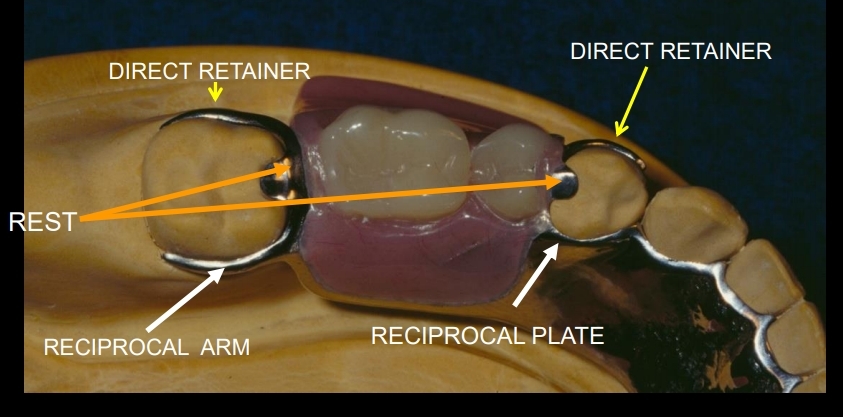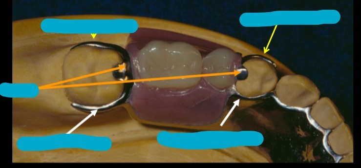 Reciprocal clasp, Lingual plate, Proximal plate, Guide plate