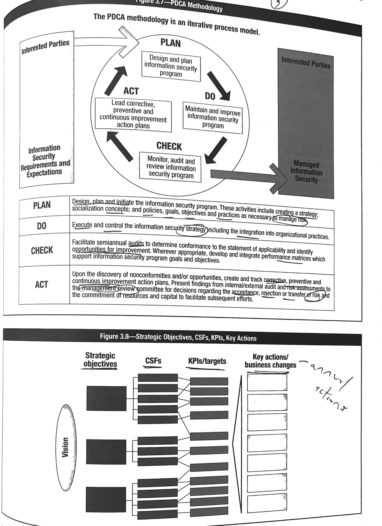 9. Outsourcing and Service Providers - security requirements are similar (3rd party vs outsourcing) but ownership is different; ISM is process owner for outsourced services; Economics are primary driver for outsourcing; Extended contracts offer little economic benefit which eliminates any initial cost savings; over a short time, control may require specific level of services but may not need it, however cost stays the same; or over a long term, outsourced services may cost more requiring more services then initially stated; must consider privacy laws; ISM should train external personnel; good way to choose vendor is by comparing their standards to the organization’s standards;