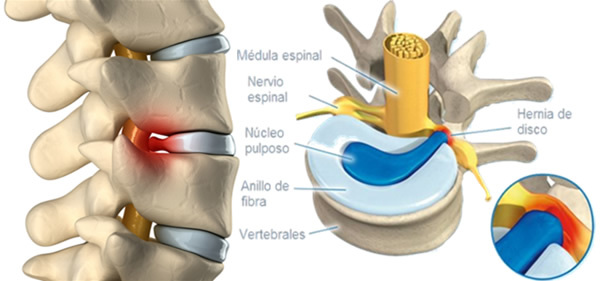 Degeneração/fraqueza do ânulo fibroso, fazendo extravazar núcleo pulposo, comprimindo raiz nervosa (sensitiva mais comum)