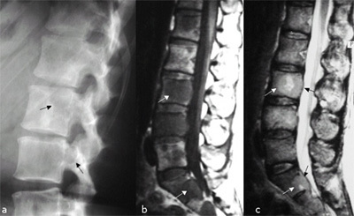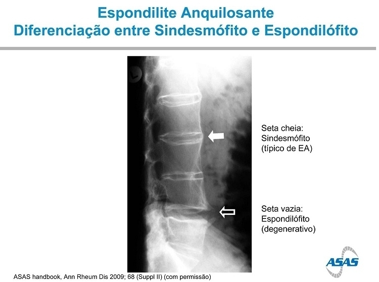 Imagem: calcificação sacro-iliaca, coluna em bambu, osteofitos calcâneo