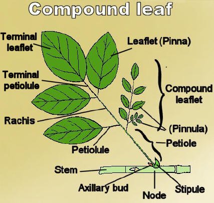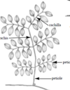 the main axis of a compound structure. It can be the main stem of a compound leaf, such as in Acacia or ferns, or the main, flower-bearing portion of an inflorescence above a supporting peduncle.