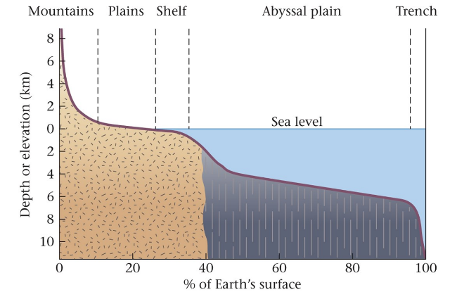 The hypsometric curve shows % of earth at certain heights.