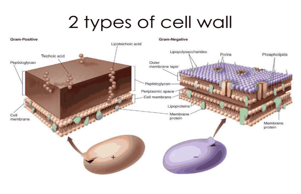 Comparer la structure de la paroi des bactéries à Gram négatif et Gram positif