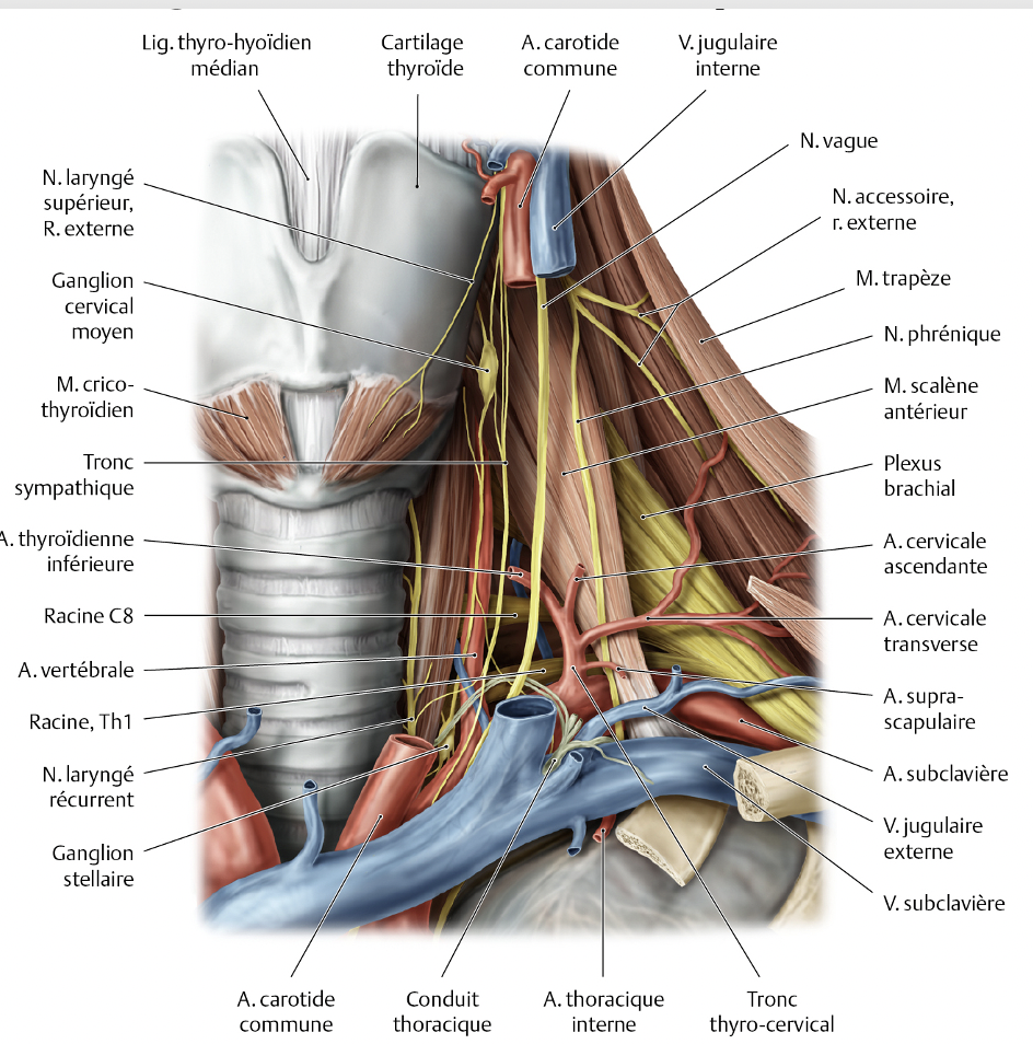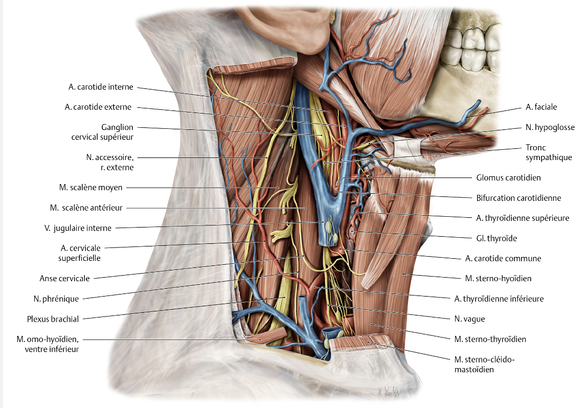 naît au niveau de l’os hyoïde et descend verticalement dans le triangle musculaire
