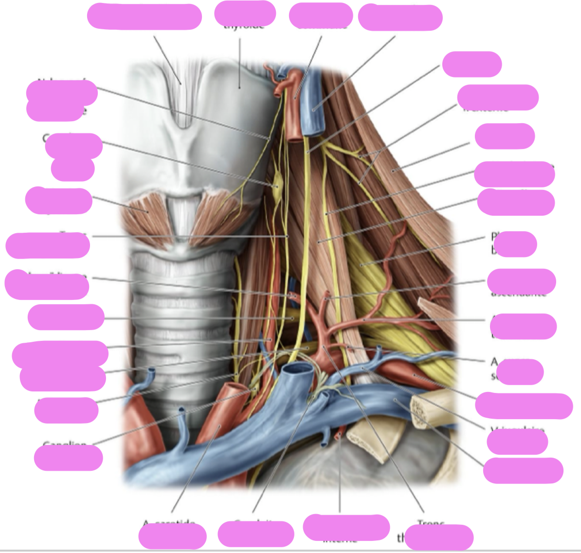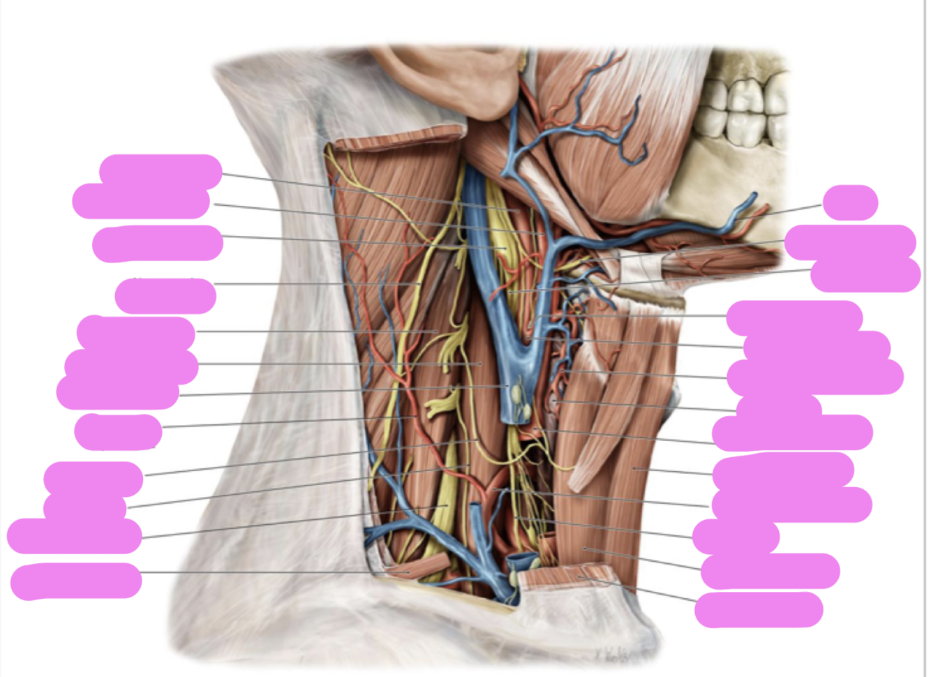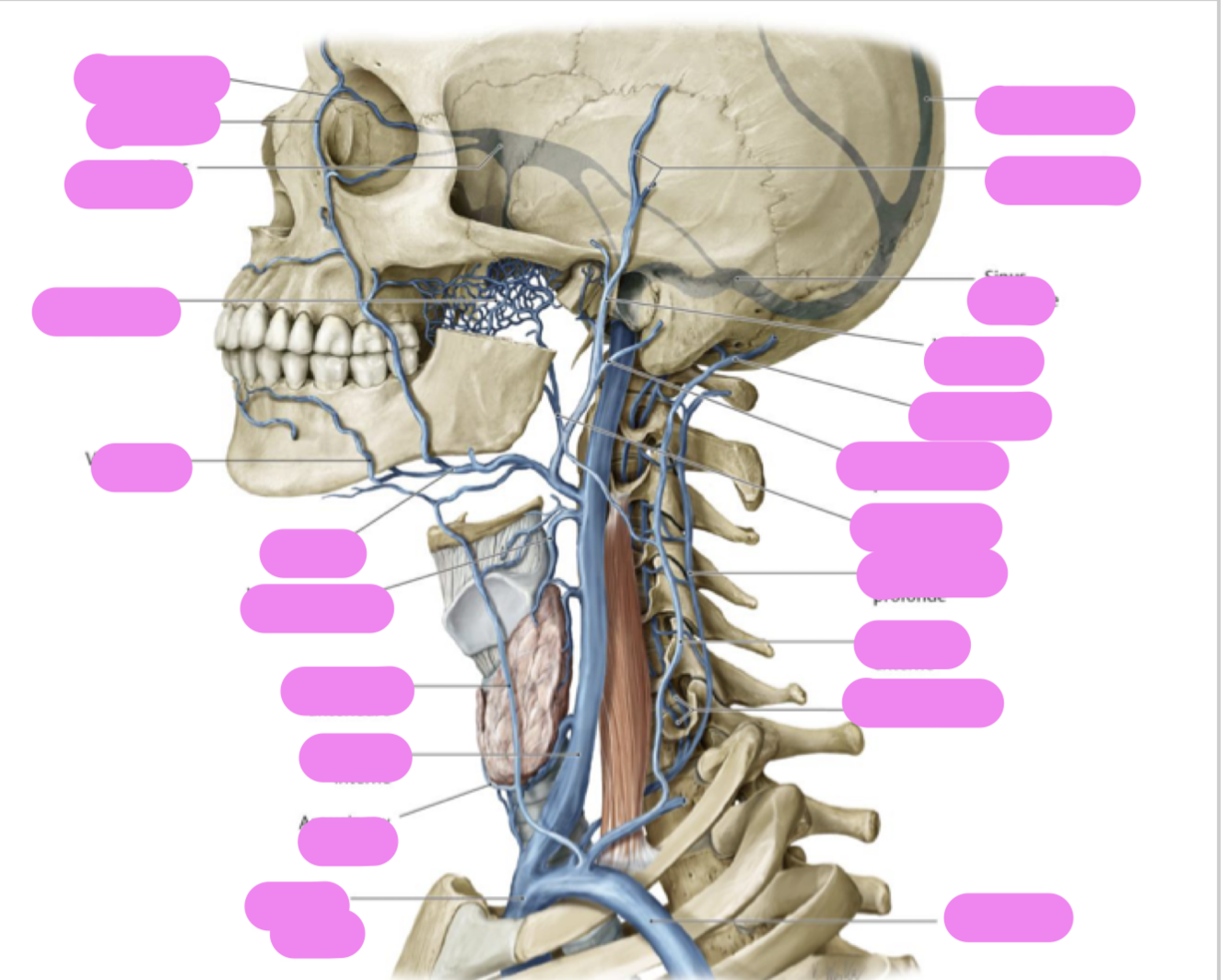 * antérieurement, les veines jugulaires internes, externes et antérieures;