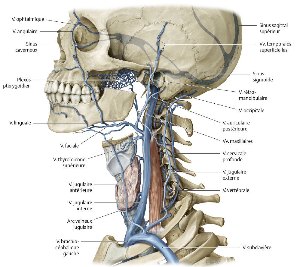 * draine le sang intracrânien, de la partie antérieure de la face et la majeure partie du cou
