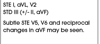 Look for STE in V1. Is specific to proximal right coronary artery occlusion