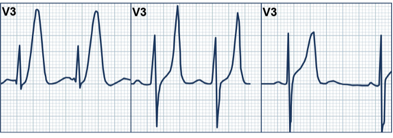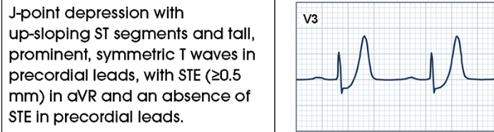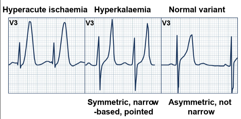This picture shows a normal variant, hyperacute ischaemia and hyperkaelmia. Which is which?