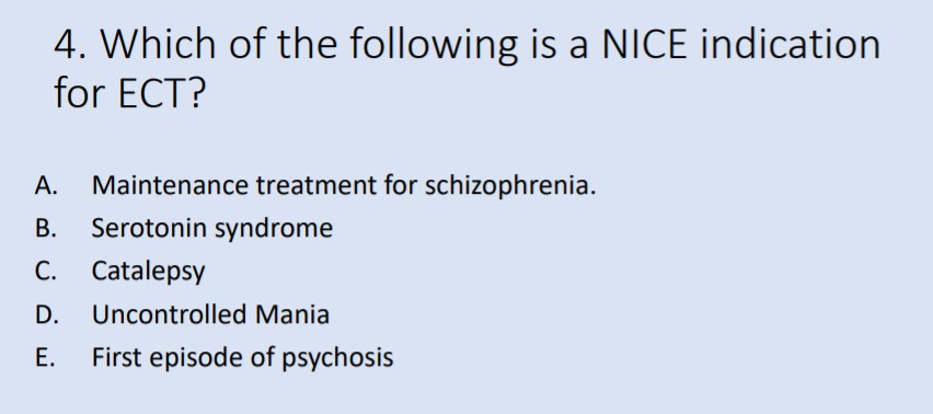 Those refusing treatment- emergency sections of the MHA. (after first 2 treatments need to be authorised by a SOAD)