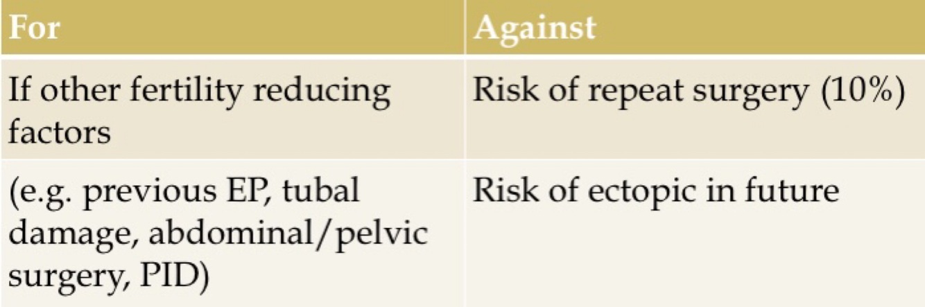 When is salpingectomy favoured over salpingostomy? (3)