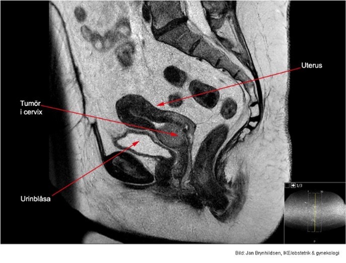 3x4 cm stor cervixtumör utan hållpunkter för spridning.