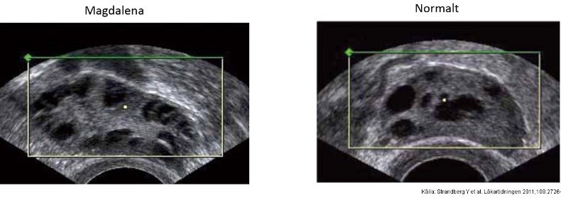 • Fler än 12 små antralfolliklar (<8 mm vardera) per ovarie.