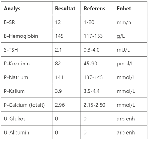 Ann-Marie Stanner, 26 år som sökt för att hon känner sig trött uppvisar dessa prover, vad har hon ev drabbats av?