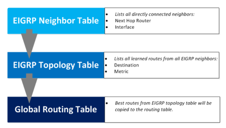 What are the 3 table in EIGRP