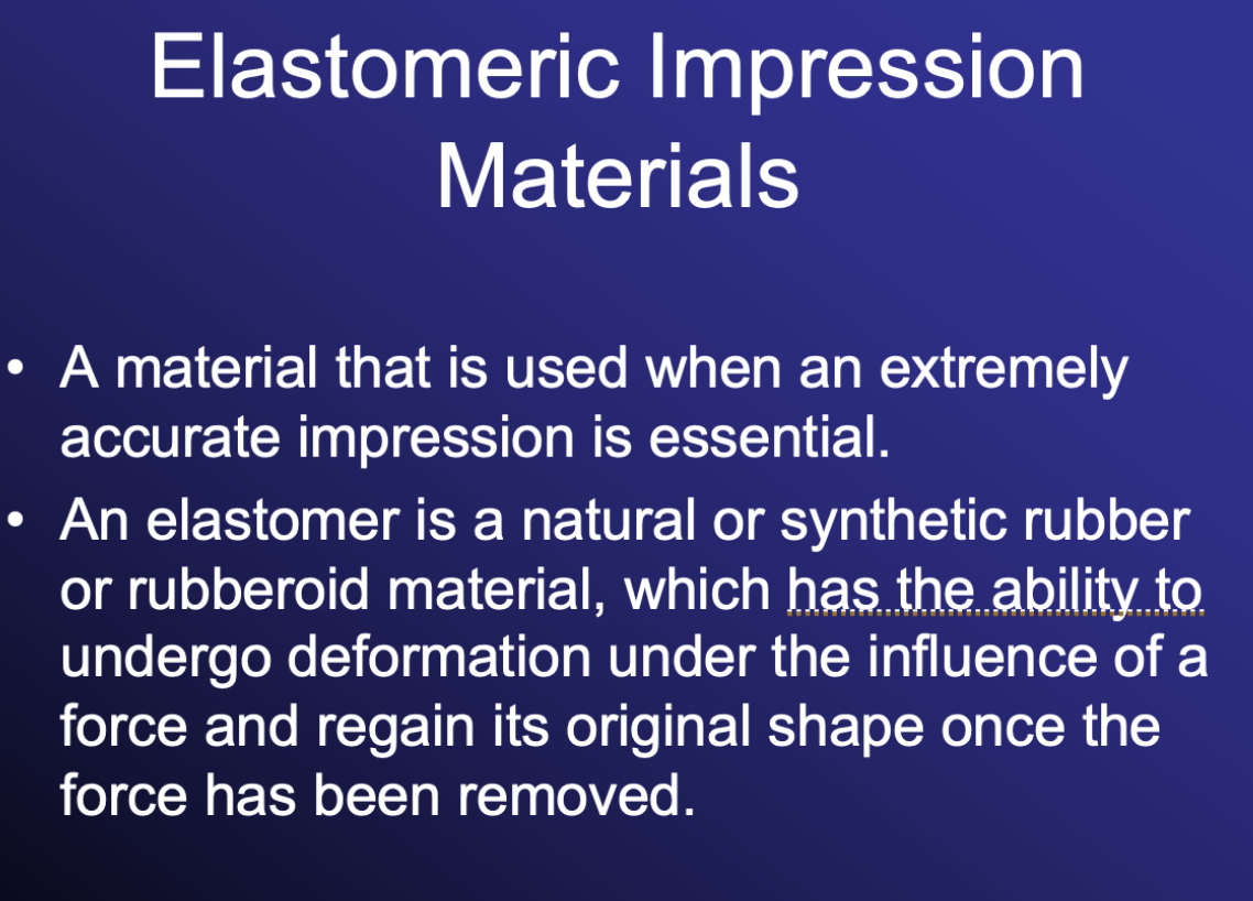 A class of rubbery materials (natural/synthetic) used when high accuracy is essential π