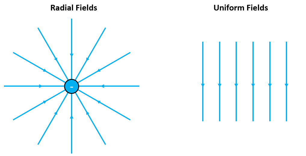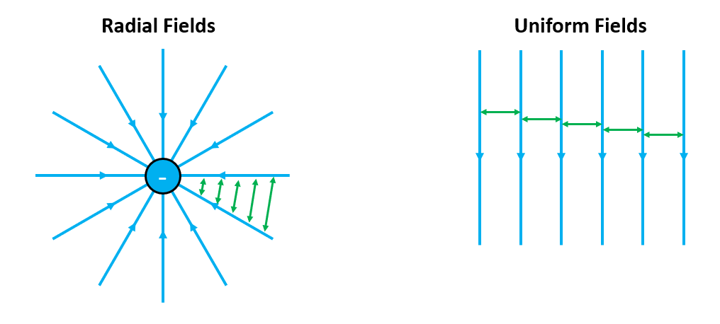 1. Radial field over a short distance 2. Field between 2 parallel plates