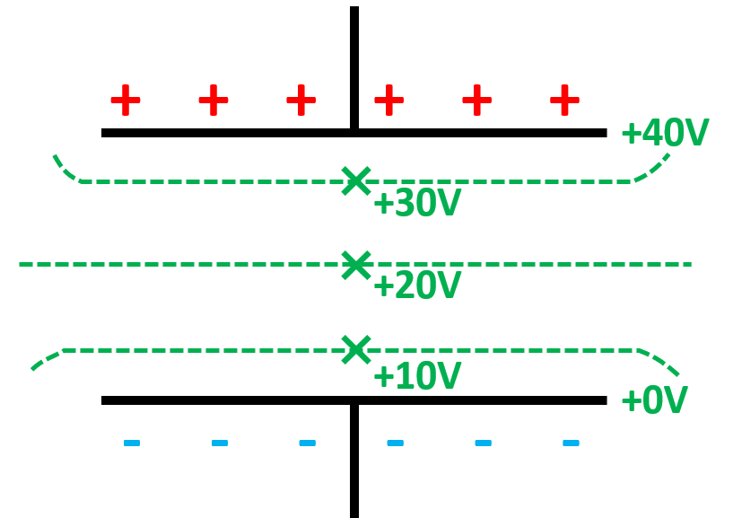 Equipotentials show the change in potential of a +ve charge If +ve charge → decreases If -ve charge → increases
