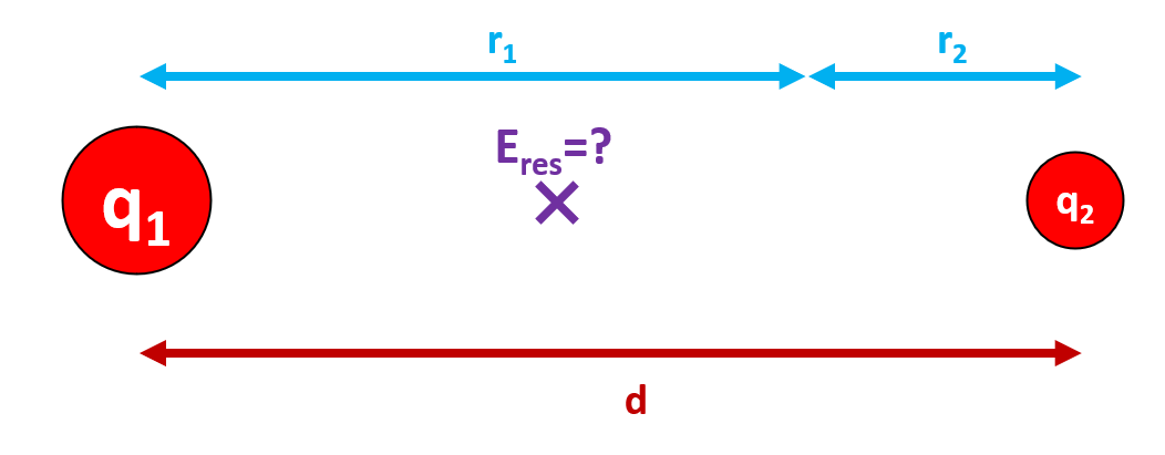 How do you calculate the **neutral electric field strength (or force) point** between charges?