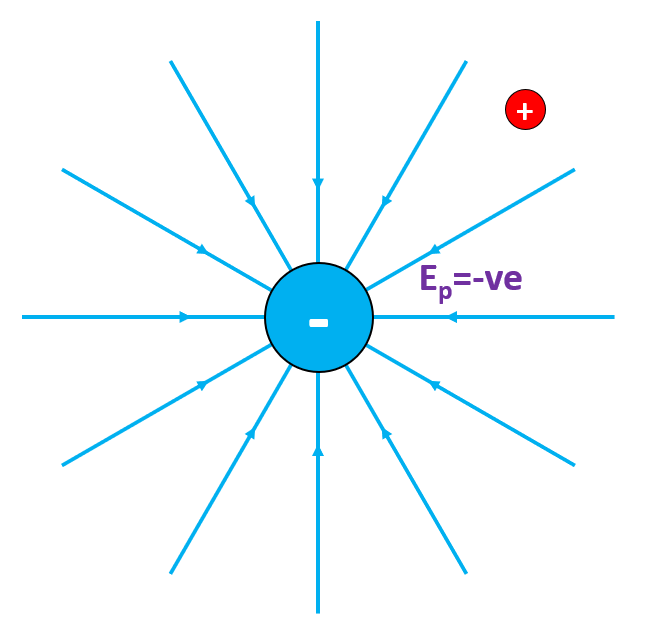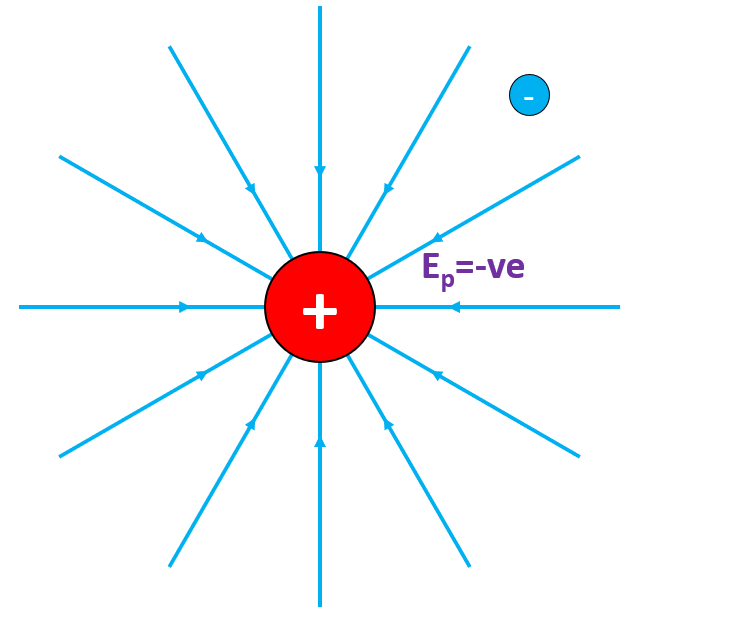 Electric potential is scalar But they are **opposite → must be subtracted**