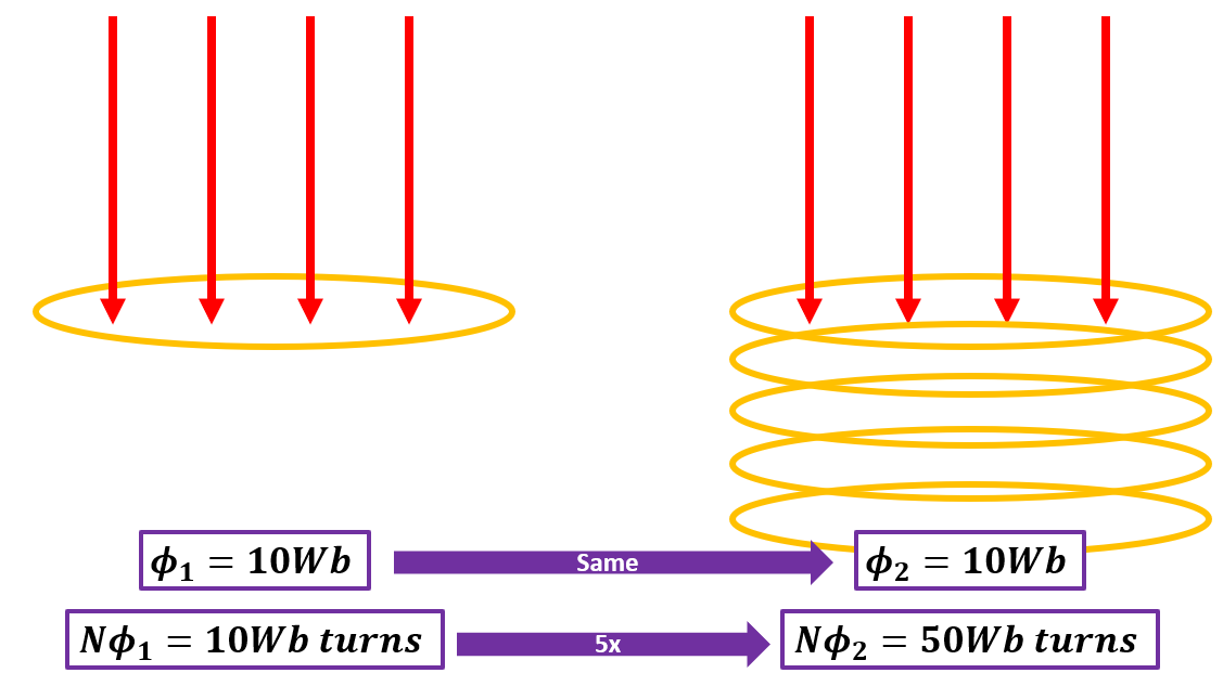 How does the number of turns in a coil affect its flux?