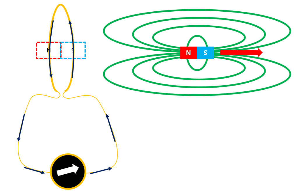 Moving the magnet in and out of the coil