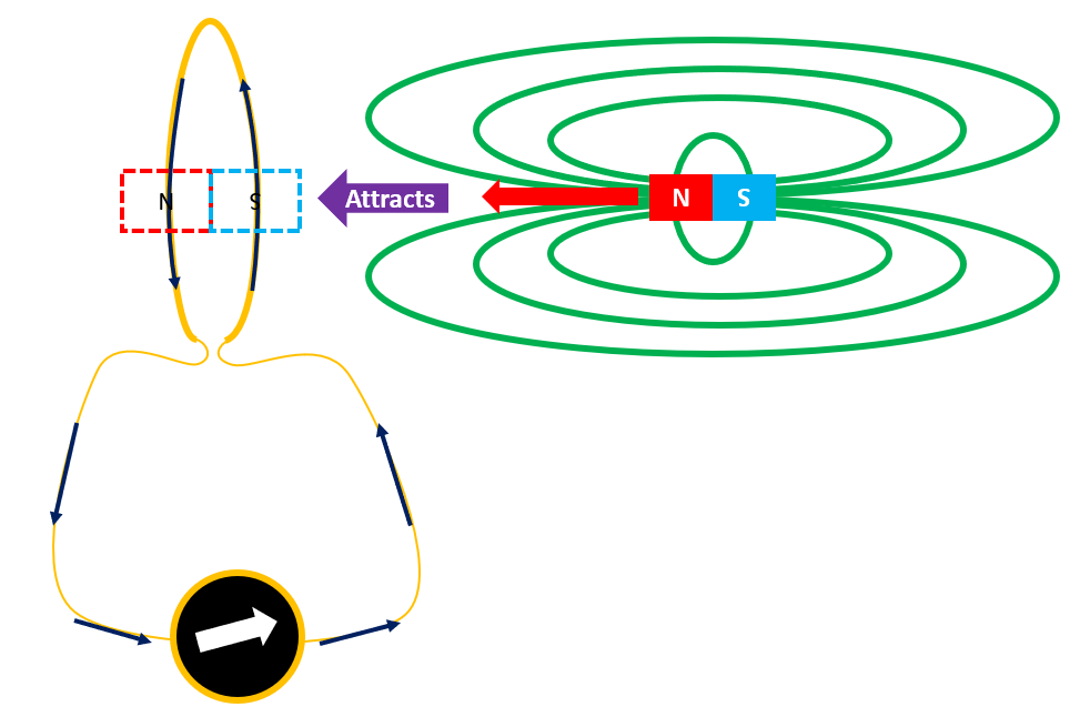 The magnetic field produced attracts the magnet