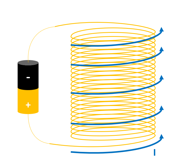 A current in a coil produces a magnetic field as shown