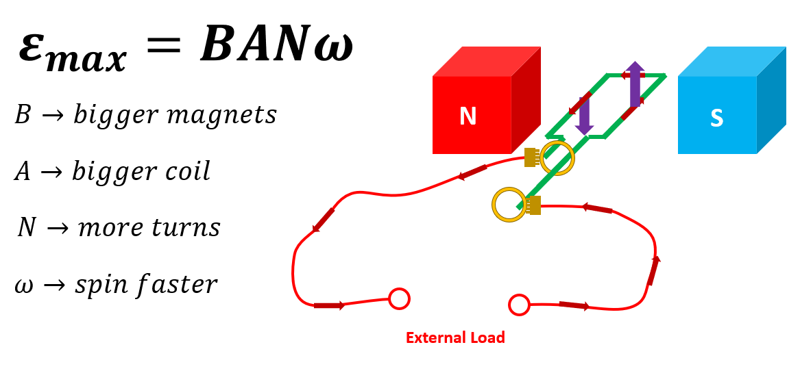How do you increase the max induced emf of the AC generator?