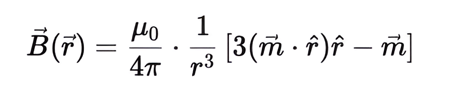 The magnetic field due to a dipole decreases as (1/r³) at large distances from the dipole.
