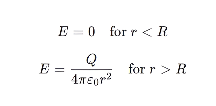 Use Gauss’s Law to derive the electric field inside and outside a spherical shell with total charge and radius.