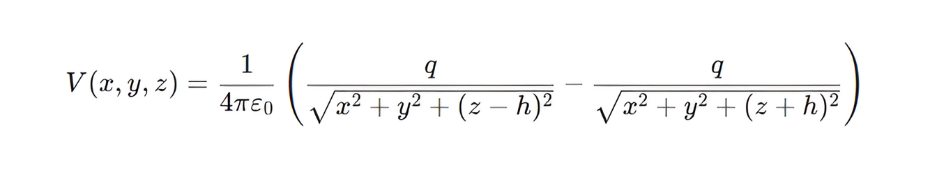Use the method of images to find the potential due to a point charge q at height h above a grounded infinite conducting plane.