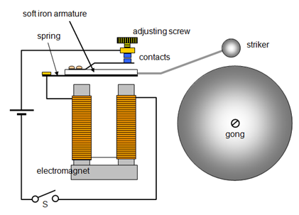 A metal arm on a lever which is attracted to a magnet causing a circuit to connect or disconnect, e.g. in an electric bell