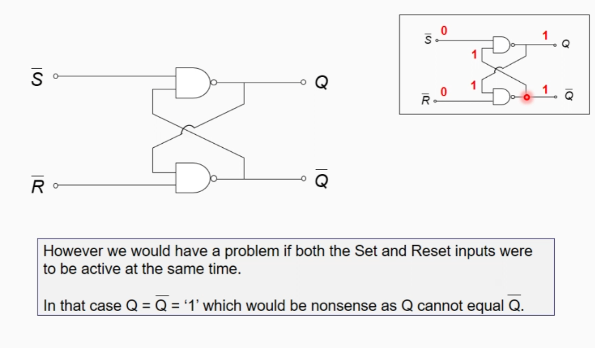 * Also note S and R can’t both be 0 as this would assume that Q and NOT q are equal which isn’t possible.