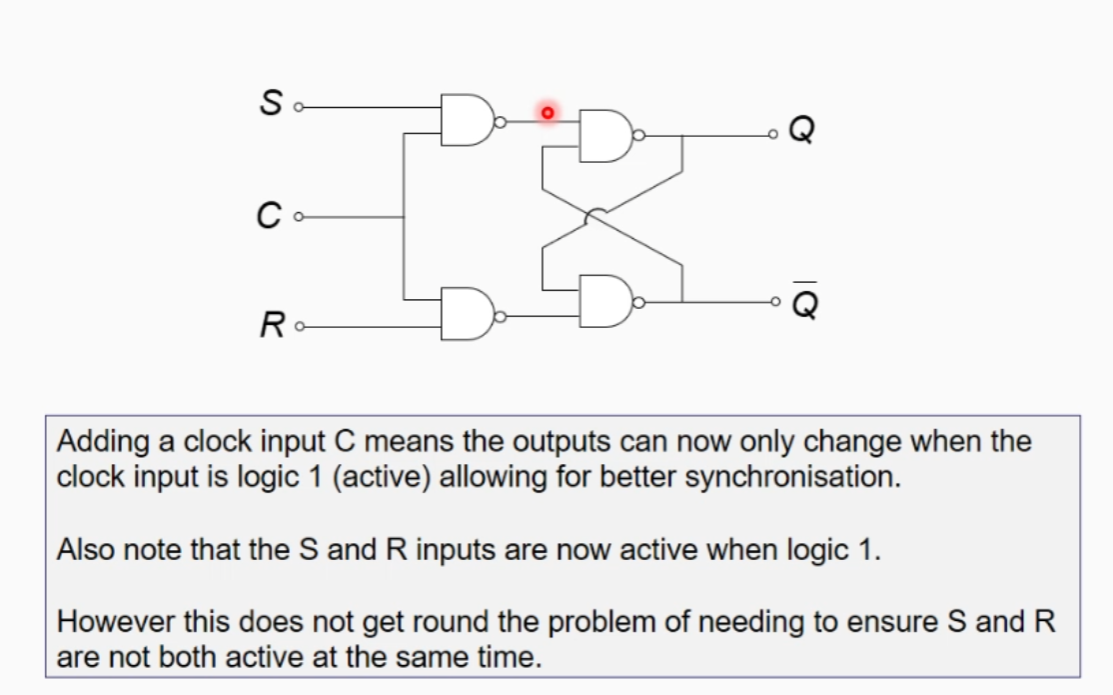 * Also S and R are now active when logic is 1, instead of 0 like before because of the additional NAND gates.