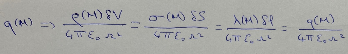 Exprimer de quatre manières différentes le champ de potentiel créé par une charge q(M)