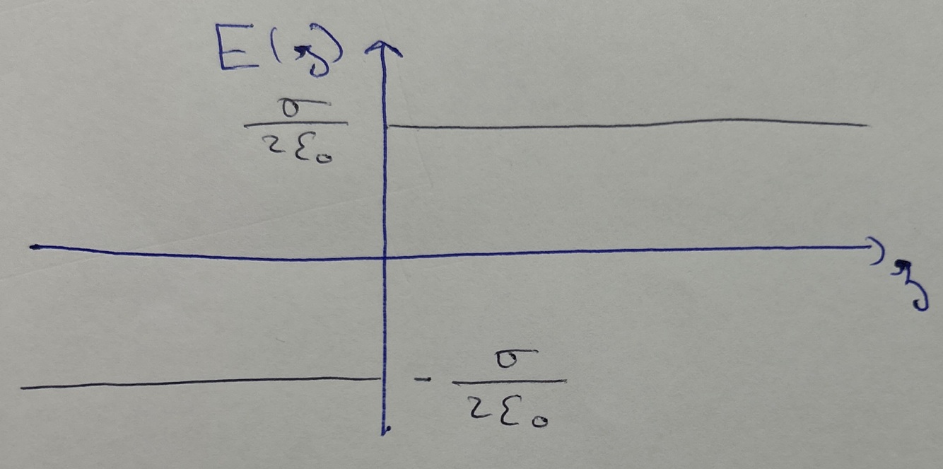 Il y a une discontinuité de E de σ/ε0 à la traversée de la surface chargée