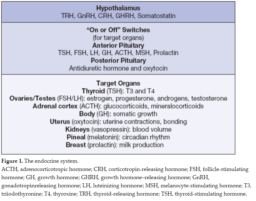 The endocrine system works as a “negative feedback” system. If a low level of “active” hormones occurs, it stimulates production. Inversely, if the level of hormones is high, it stops production.