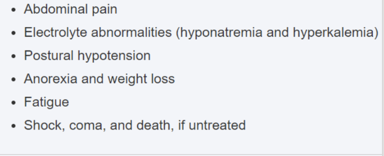 Cannot tolerate stress (emotional or physical), no cortisol