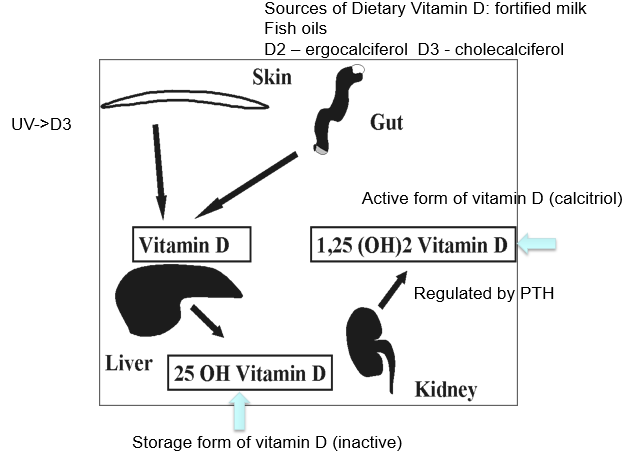 Fortified milk, Fish oils, D2 ergocalciferol, D3 cholecalciferol