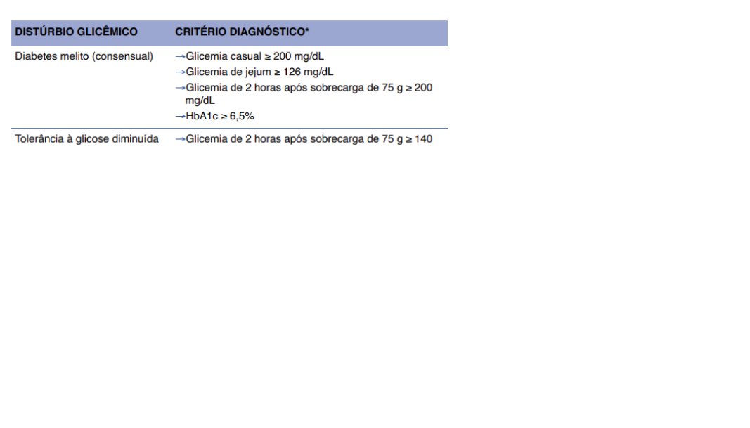 Glicemia de 2h pós sobrecarga de 75g ≥ 200mg/dL