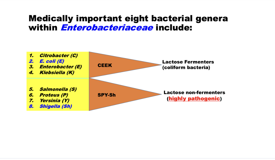 What are the 8 important enterobacteriaceae?