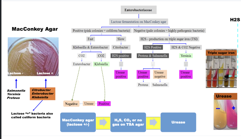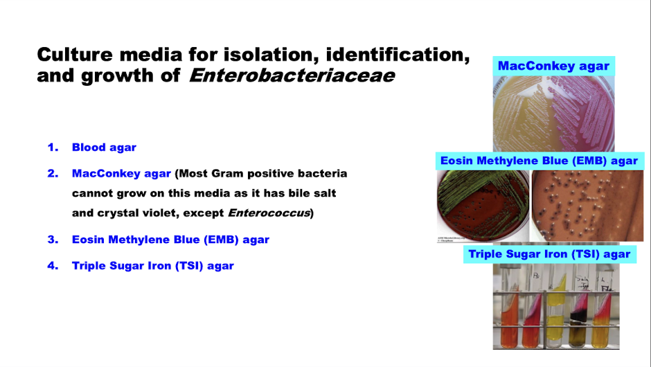 What are the different culture media used and their interactions with enterobacteriaceae?