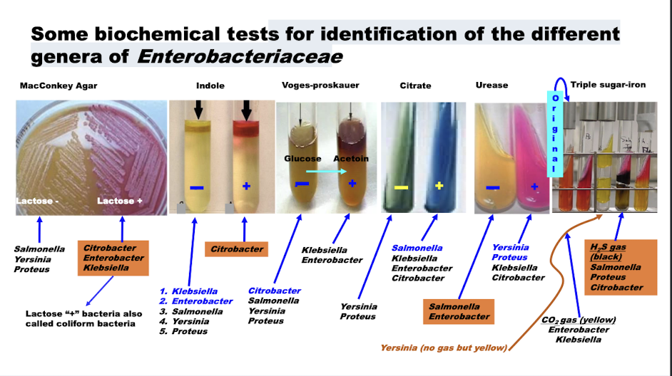 What are some biochemical tests s for identification of the different genera of Enterobacteriaceae?
